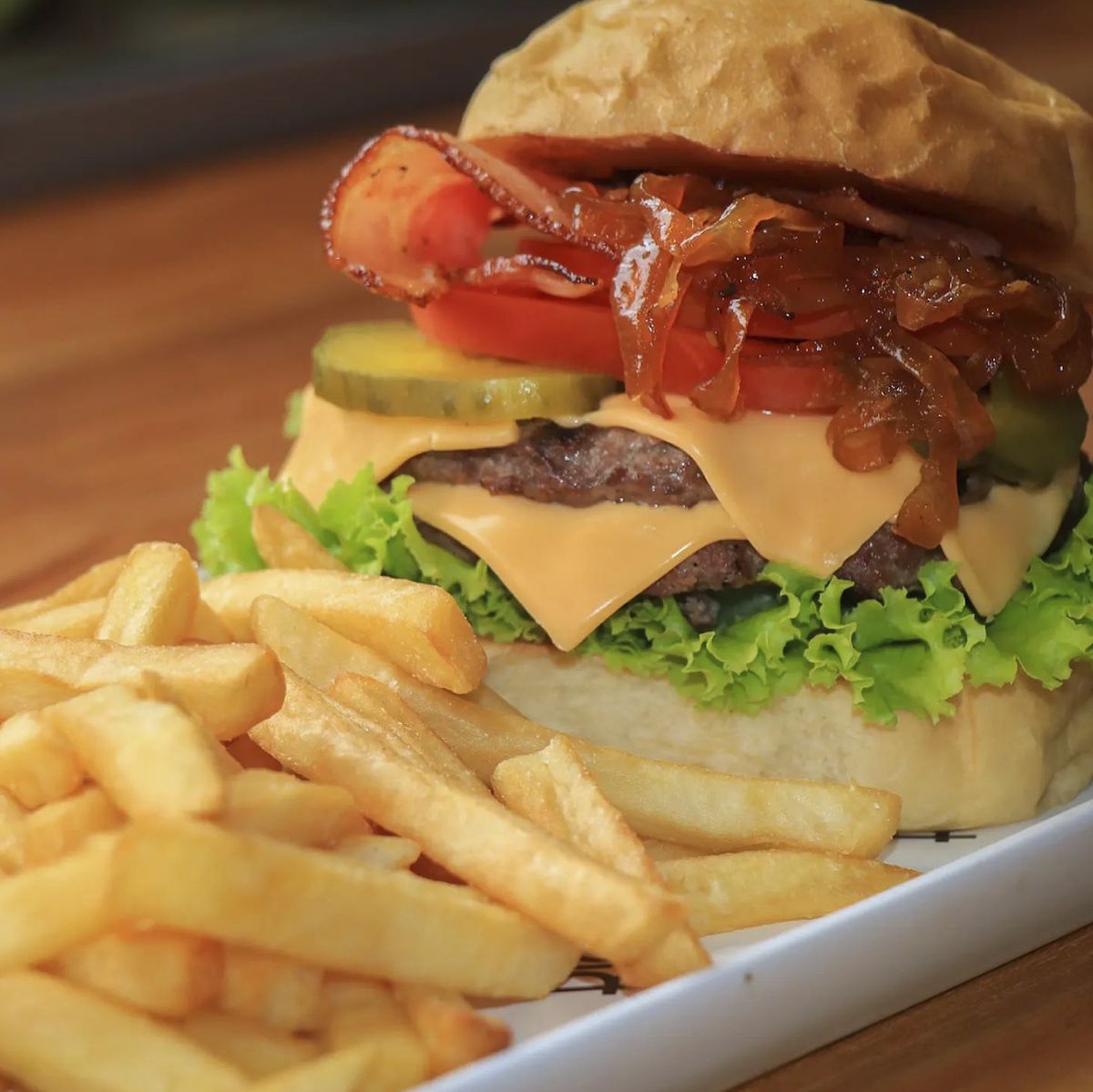 Para los amantes de la carne: Hamburguesa Angus con tocino y queso cheddar, Churrasco a la parrilla con chimichurri, Lomo saltado con arroz chaufa.