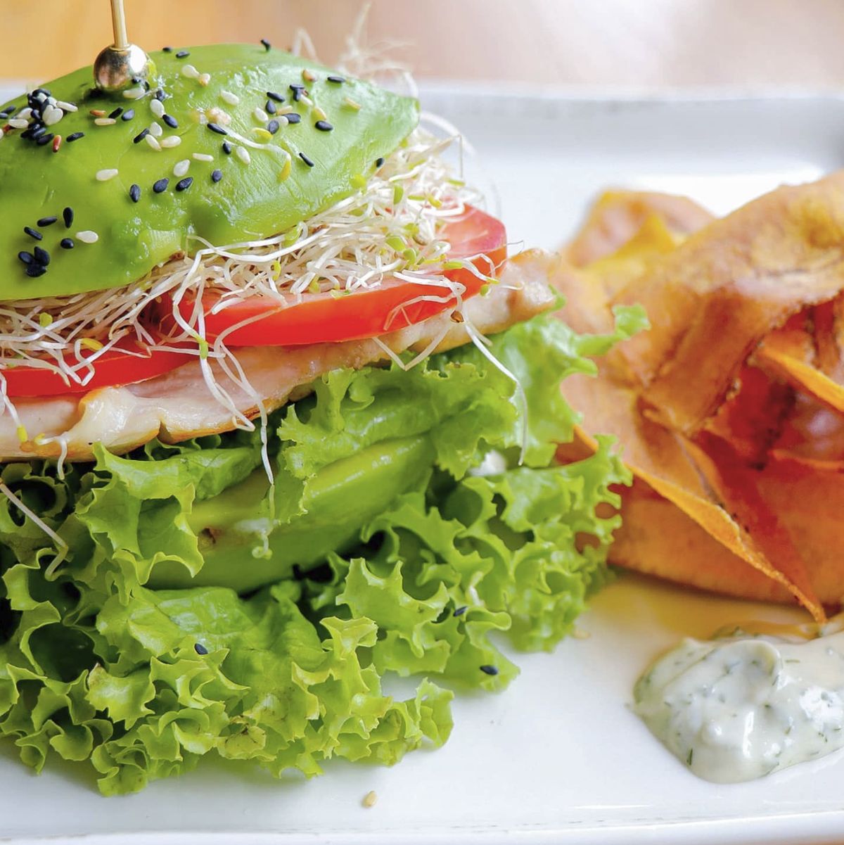 Opciones saludables: Avena con frutos secos y semillas, Tostada de aguacate con huevo escalfado, Ensalada de frutas.