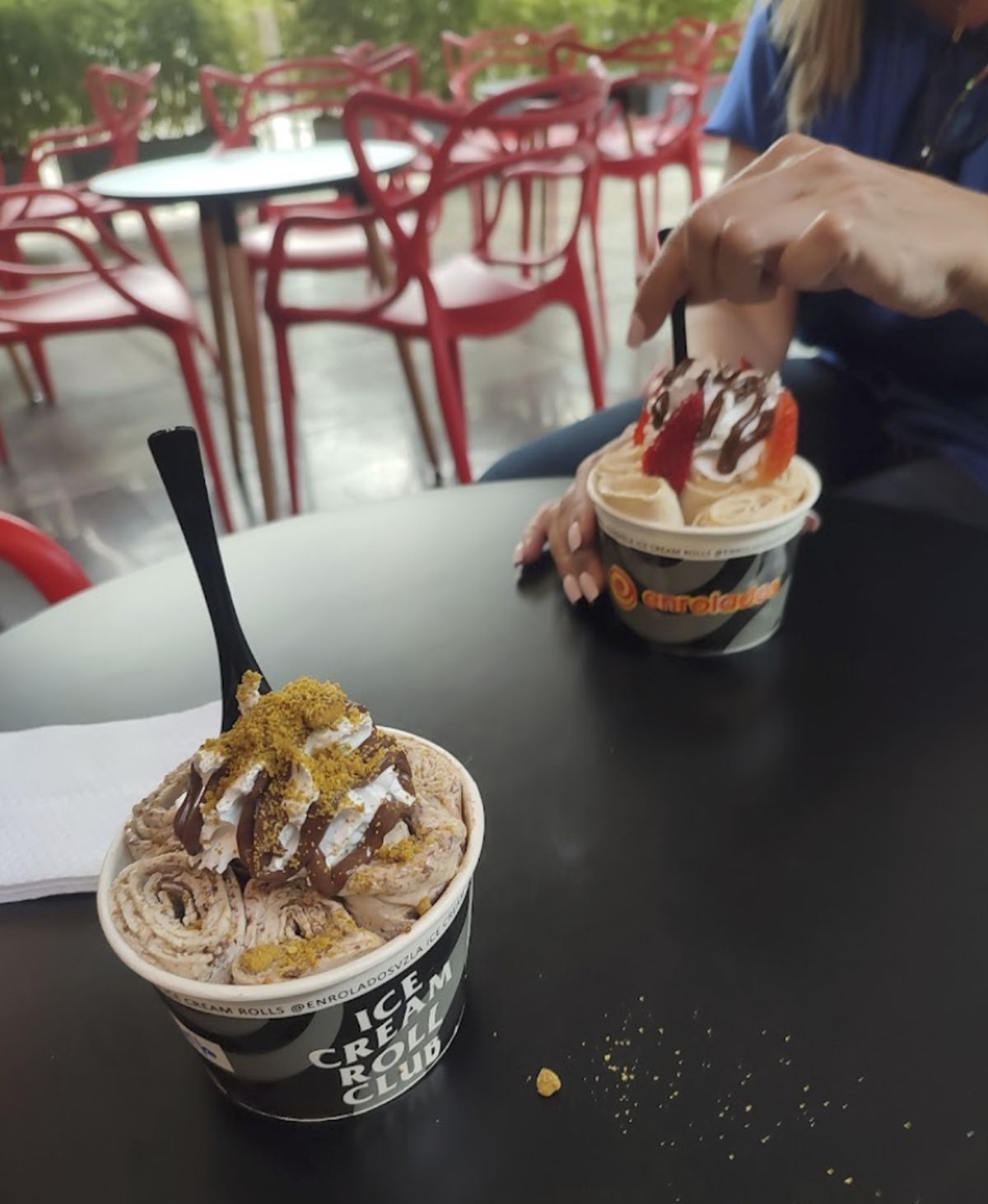 Lo que realmente distingue nuestros Ice Cream Rolls es nuestro método exclusivo de preparación. Utilizamos una plancha de acero denominada anti-griddle, refrigerada a temperaturas extremadamente bajas (-18°C a -40°C). Esto permite crear bases de leche perfectamente gelatinosas sin necesidad de máquinas industriales. Luego, agregamos diversificados sabores utilizando chocolates y frutas frescas, todos ellos mezclados manualmente para asegurar una textura única y deliciosa1.