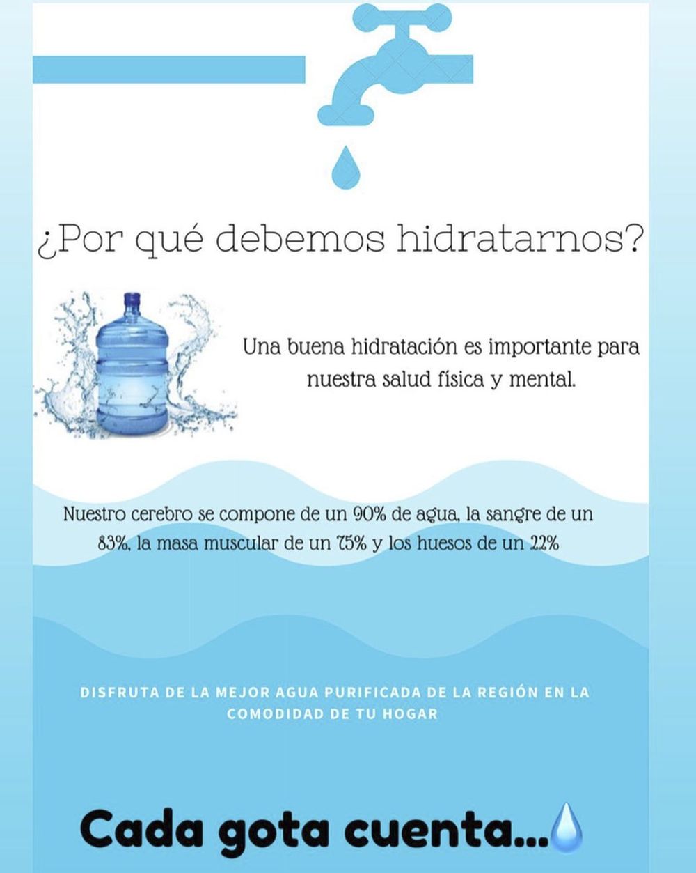Nuestra agua es extraída de fuentes naturales y sometida a un riguroso proceso de purificación que elimina todas las impurezas. Esto nos permite ofrecerte un agua fresca, pura y saludable para toda tu familia.